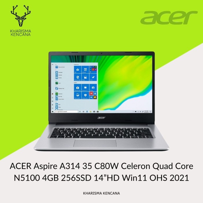 ACER 3 Slim A314-35-C80W CEL-N5100 4GB 256GB W11 Home + OHS 2021(NX.A7SSN.00C) Pure Silver + Backpack